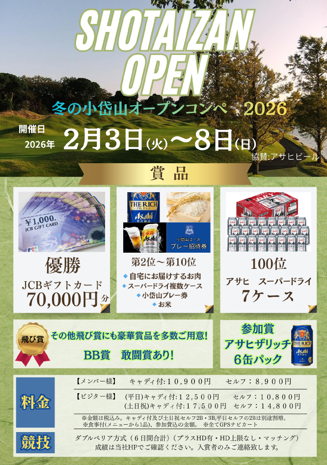 • 冬のオープンコンペ「小岱山オープン」【令和8年2月3日(火)~8日(日)開催】