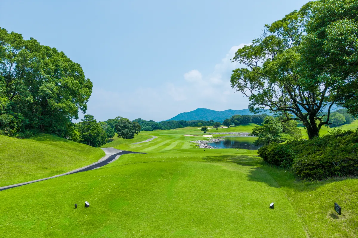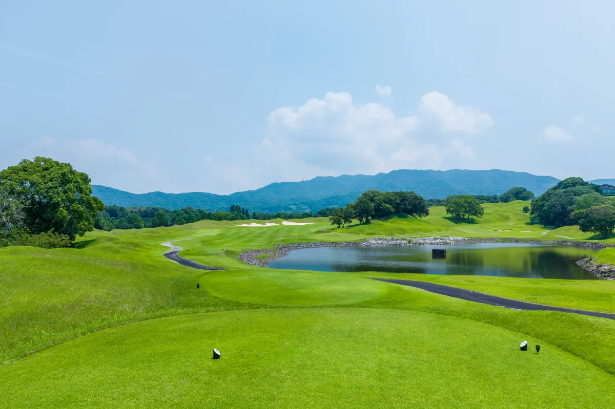 池とのコントラストが美しい小岱山コースのラスト3ホールのスタート。