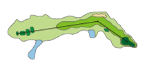 コース右側にはウォーターハザードもあり、第2打はグリーン面が見えず、グリーンも縦長で奥へ向って下っていてクラブ選択が難しい。