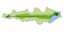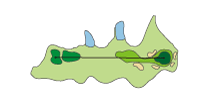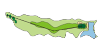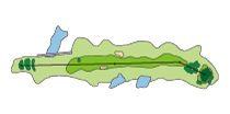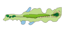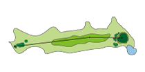 200ヤード地点、フェアウェイセンターにグラスバンカーがあり、ティーショットの正確さが必要、やや打ち上げのフラットなコースで縦長のグリーン。